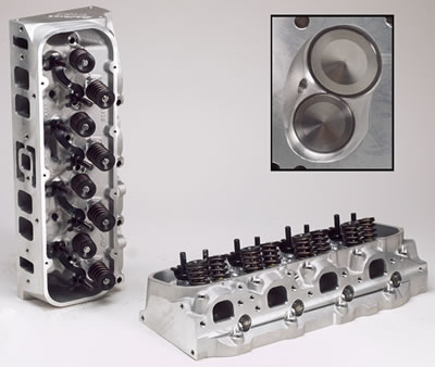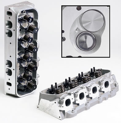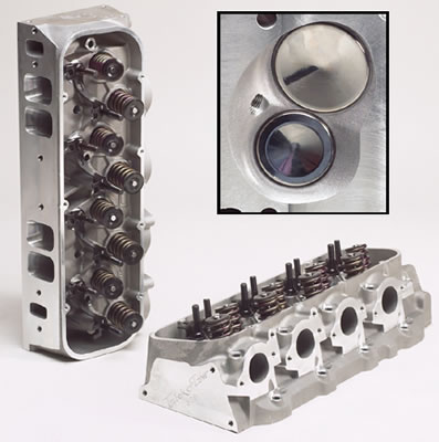 454 cubic inch big blocks are considered small by today’s standards where 502 ci and 572 ci engines are becoming more common. Obviously, a 454 ci engine will not have the same airflow demands as a 572 ci engine. The cylinder heads listed below still have good drivability in stop-and-go driving situations and low speed response while giving improved performance at the top end.
