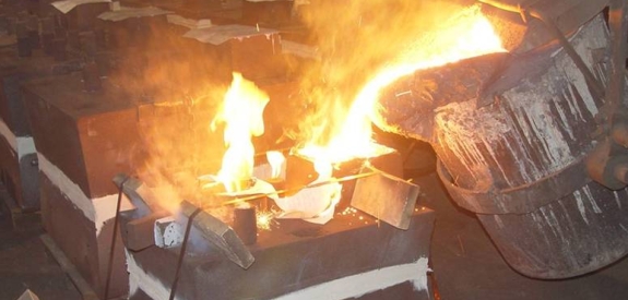 Cast Iron being poured into molds at the foundry. (Photo from CFM Corporation)