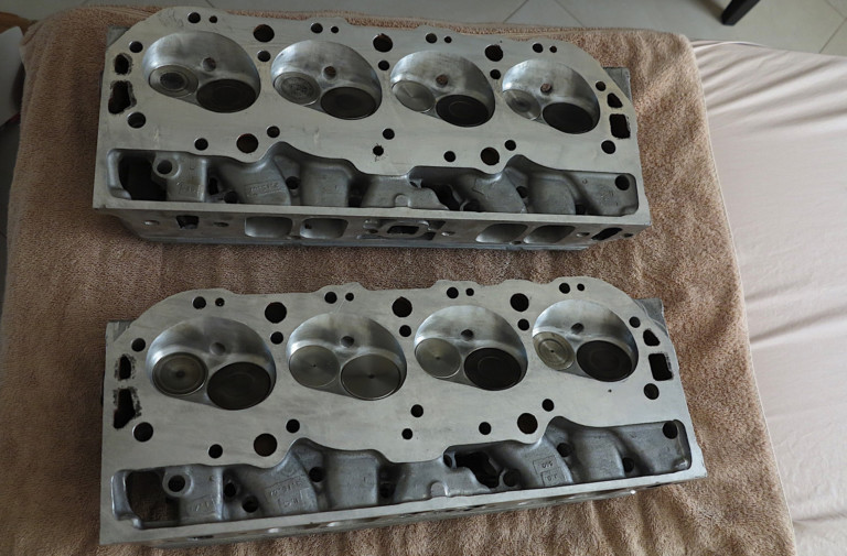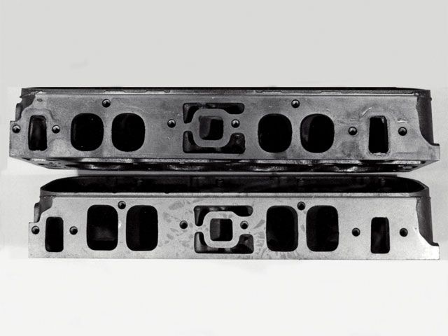 Factory GM oval port heads with 225cc intake port volumes ....w/combustion chamber volumes ...