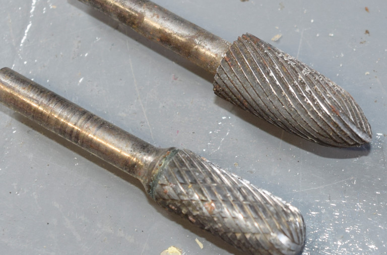 Carbide burrs ranging in size from 3/16" (4.75mm) diameter to 3/8" (9.5mm) diameter, a 30,000 RPM die grinder is recommended.