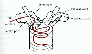 The Cylinder-Head, valve ports and the combustion chambers of petrol engines are designed so of that the air-fuel mixture will be subjected to swirl, or turbulence. This movement occurs while the mixture is being taken into the cylinder (Figure 2.4) and also when it is being compressedin the combustion chamber.